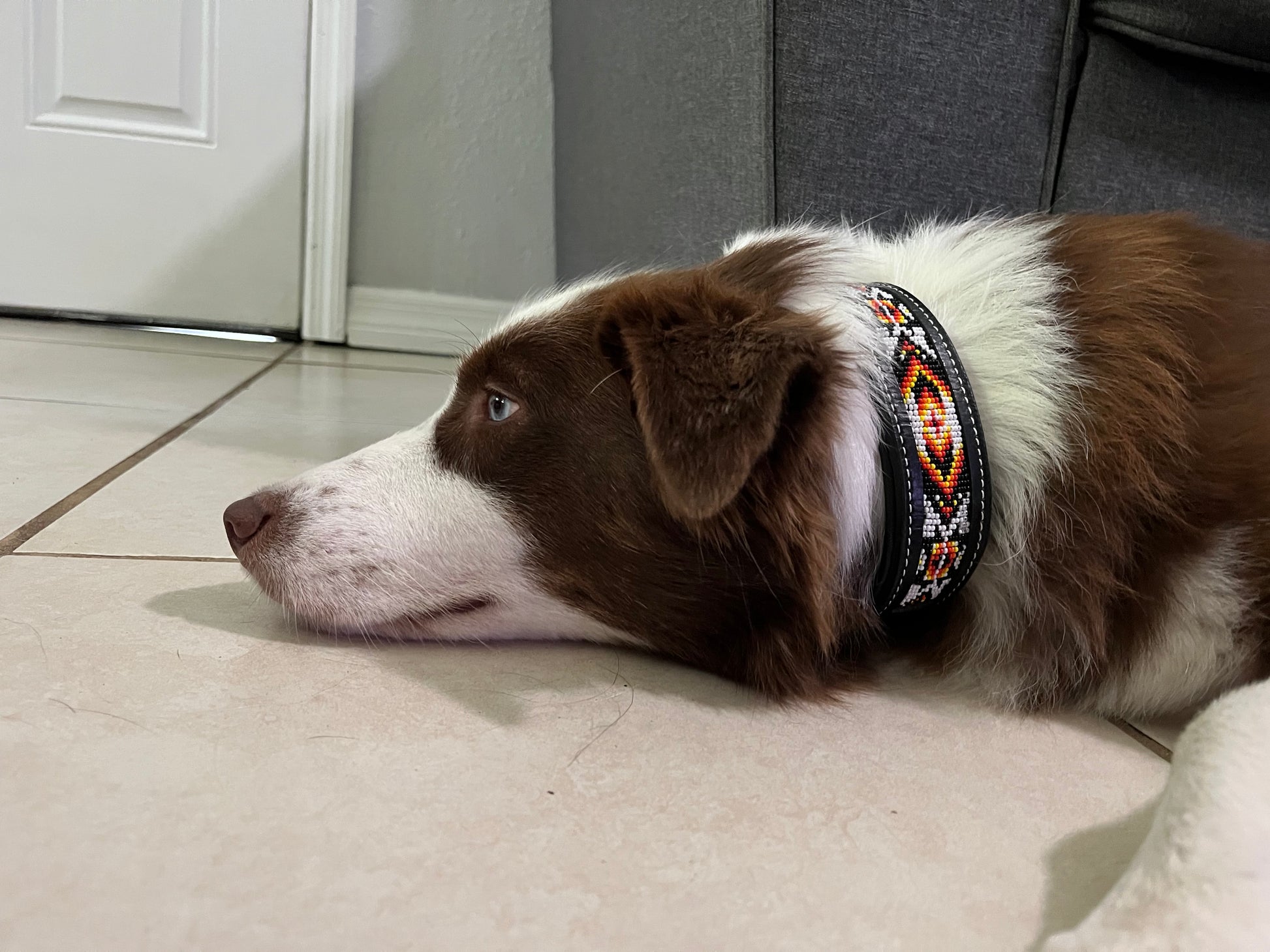 Explore the intricate artistry of our handcrafted leather collars, adorned with delicate beads and expert tooling. The collar's dimensions may impact the design coverage, so please examine the images to select your preferred size and pattern. Padded underside for your dogs ultimate comfort.