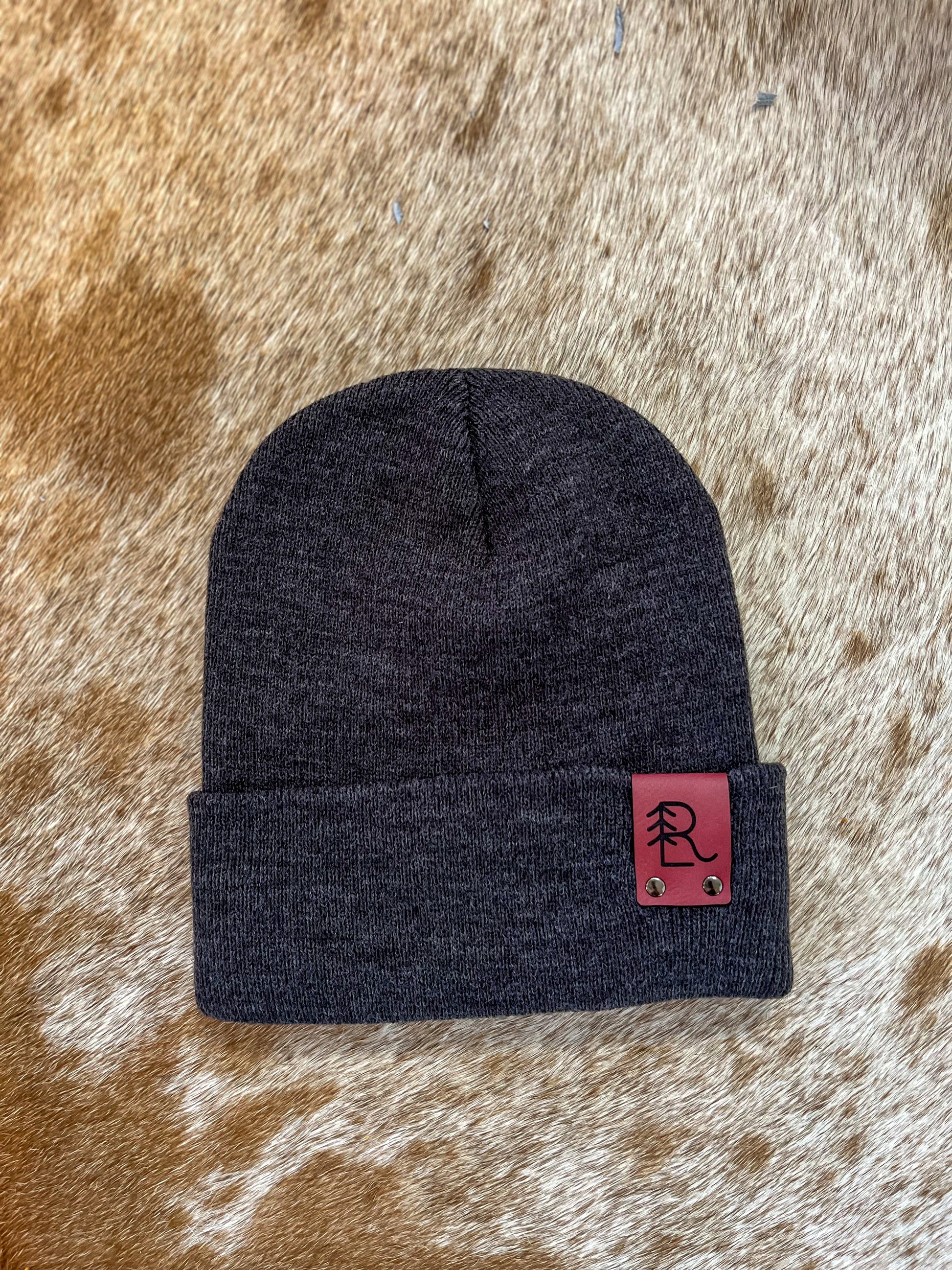 The Ranch Brand offers leather patch beanies in classic grey with a complementary red patch.