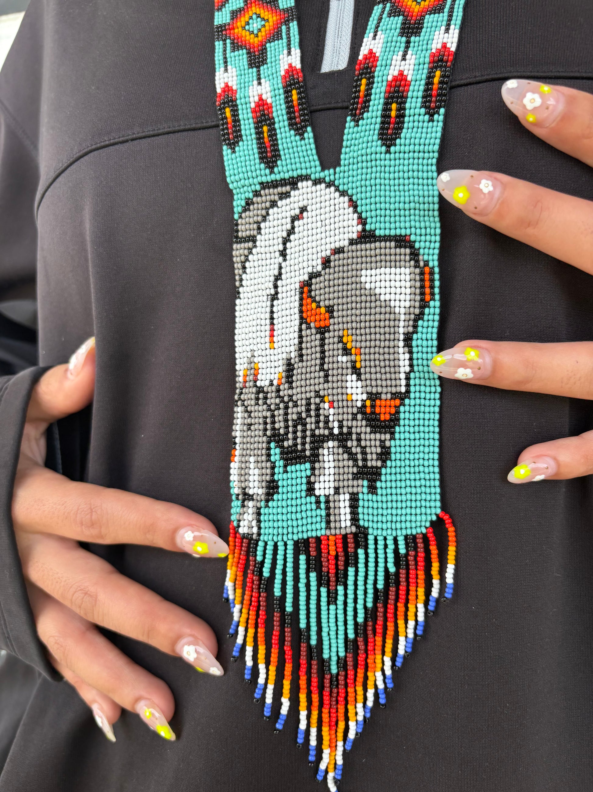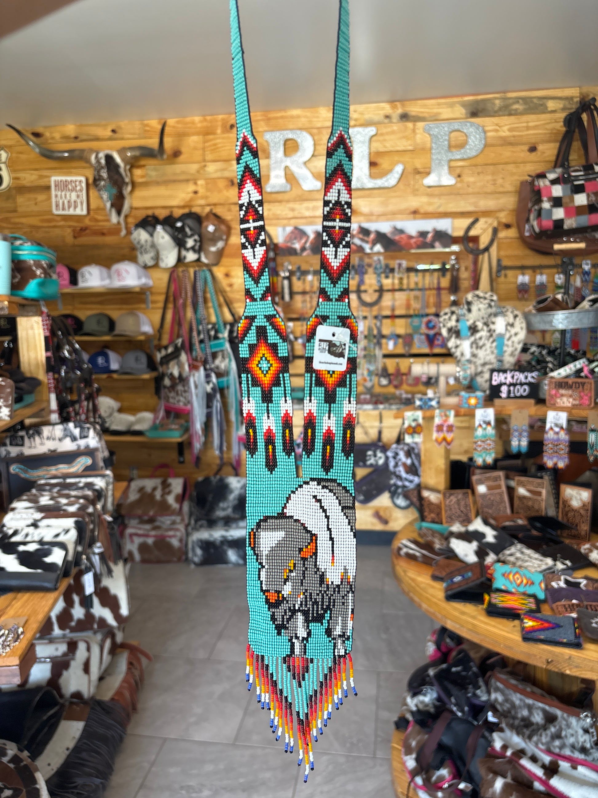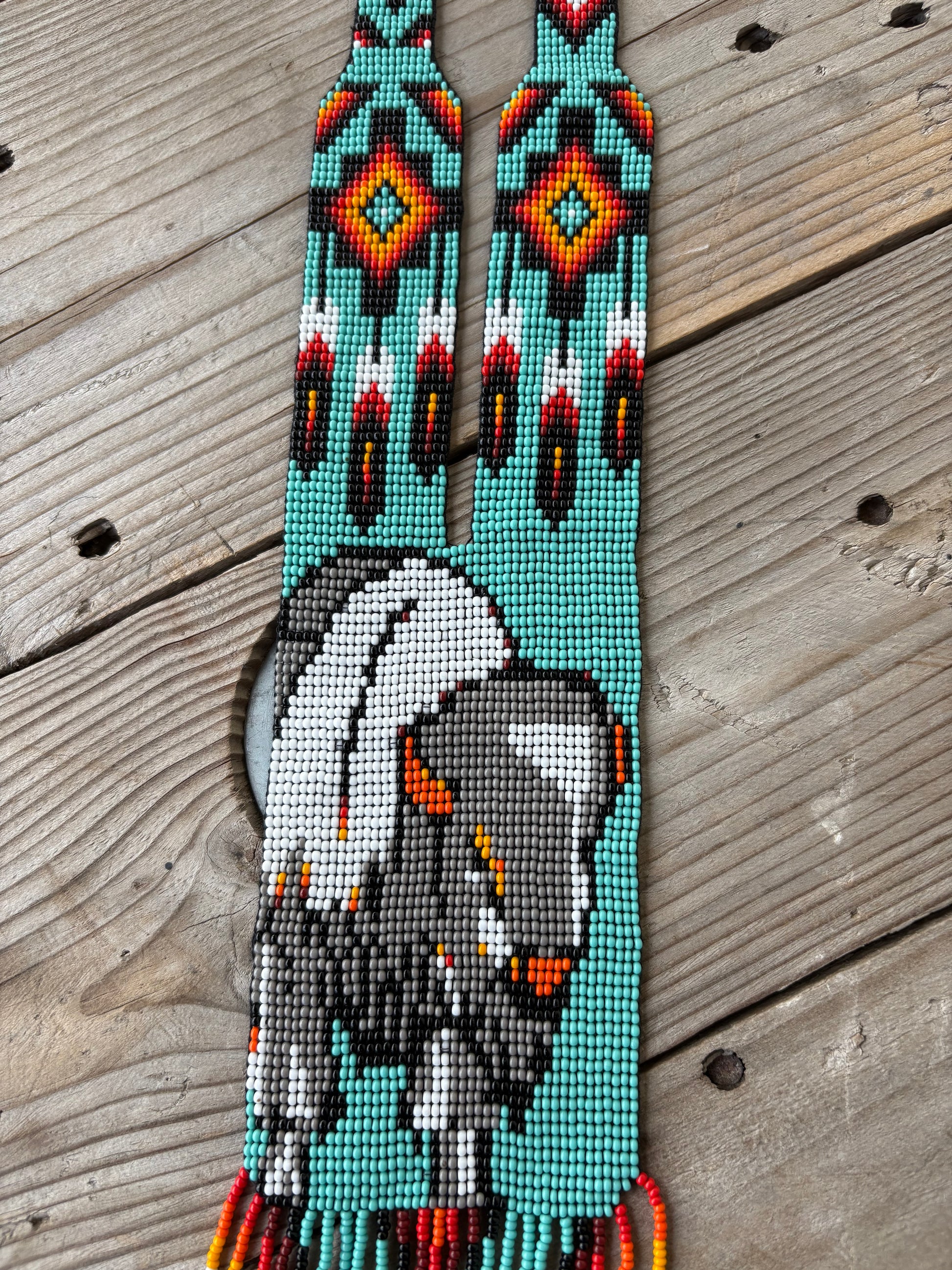 For all occasions, dress up or dress down with the Buffalo Beaded Necklace. Featuring a beautiful combination of turquoise and buffalo design, this necklace is handcrafted with 100% beads and is perfect for any occasion or event! Support local.