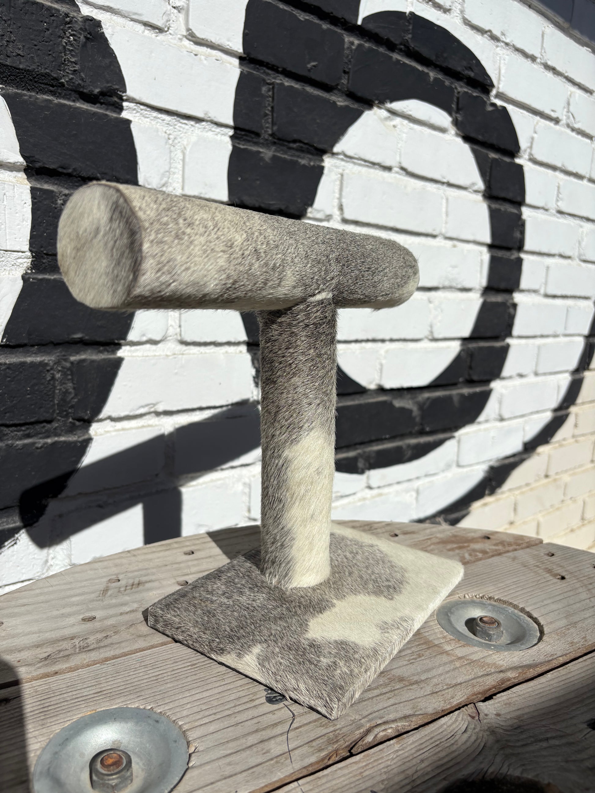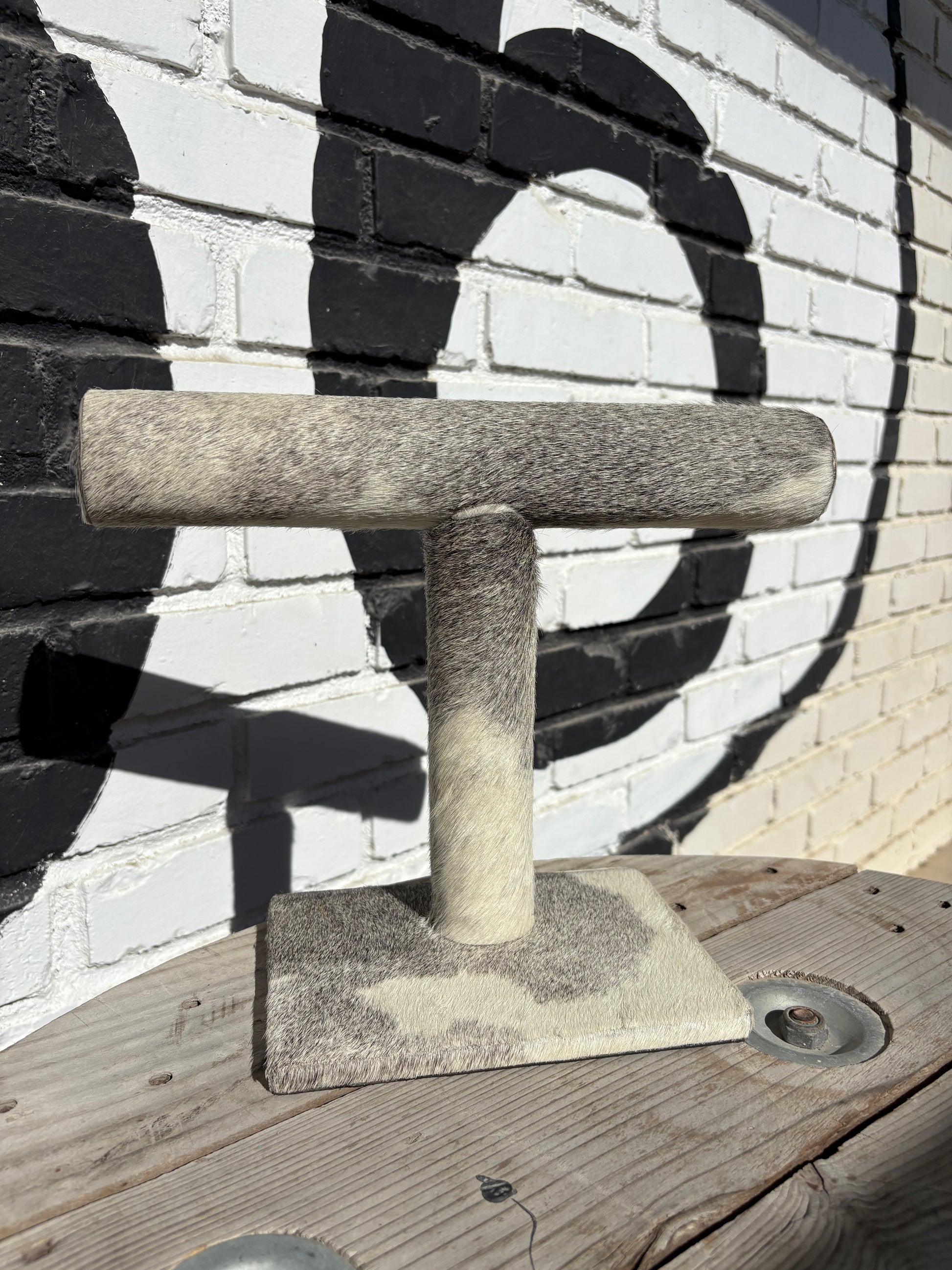 This 12” long and 10” tall Cowhide Bracelet Display features a 7”x5” wooden base. Its beautiful genuine cowhide adds a touch of elegance to your home or boutique and is perfect for showcasing pictures and other items.