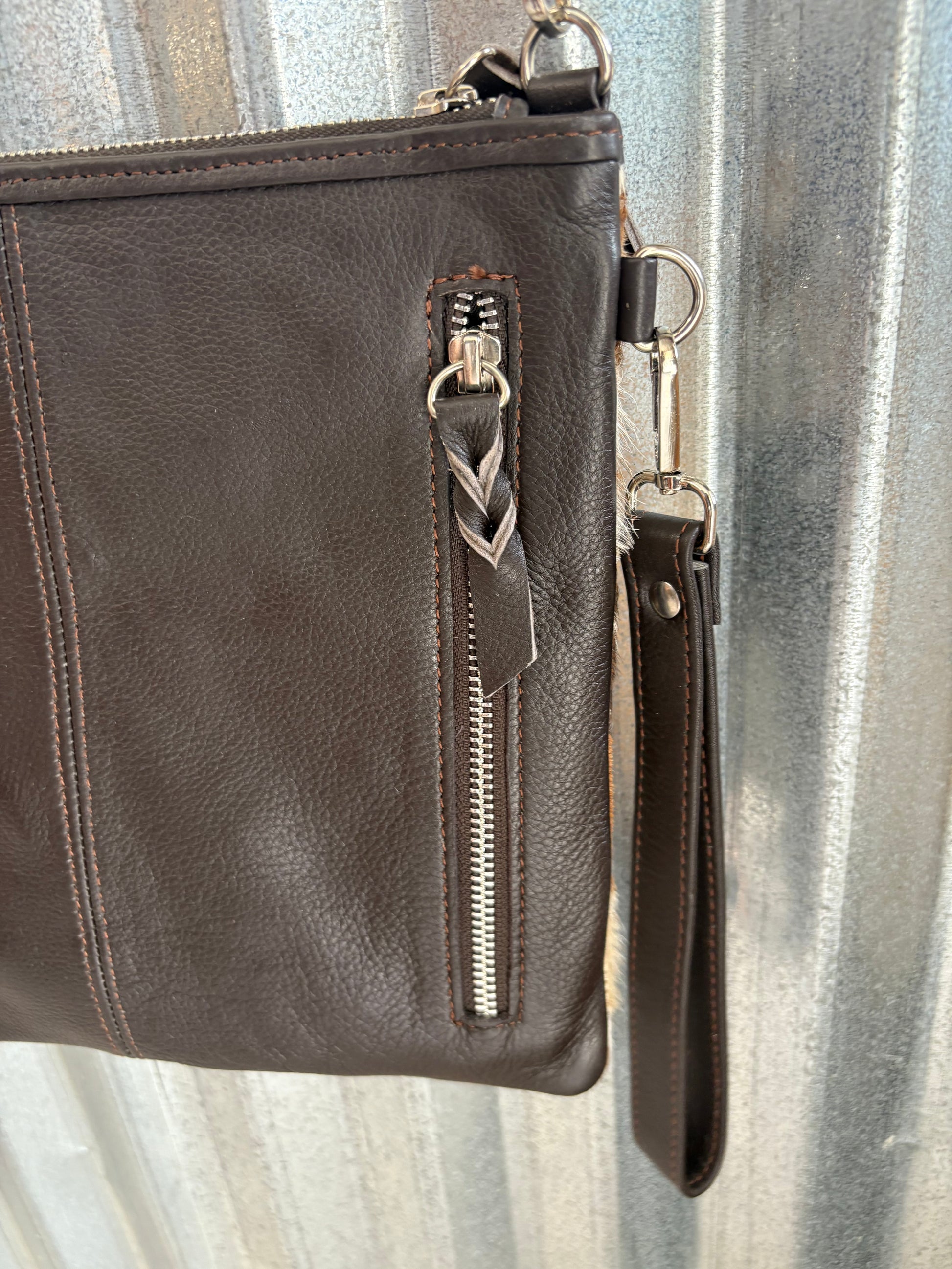 Cowhide Diamond Patch SidePurse / Wristlet - Black