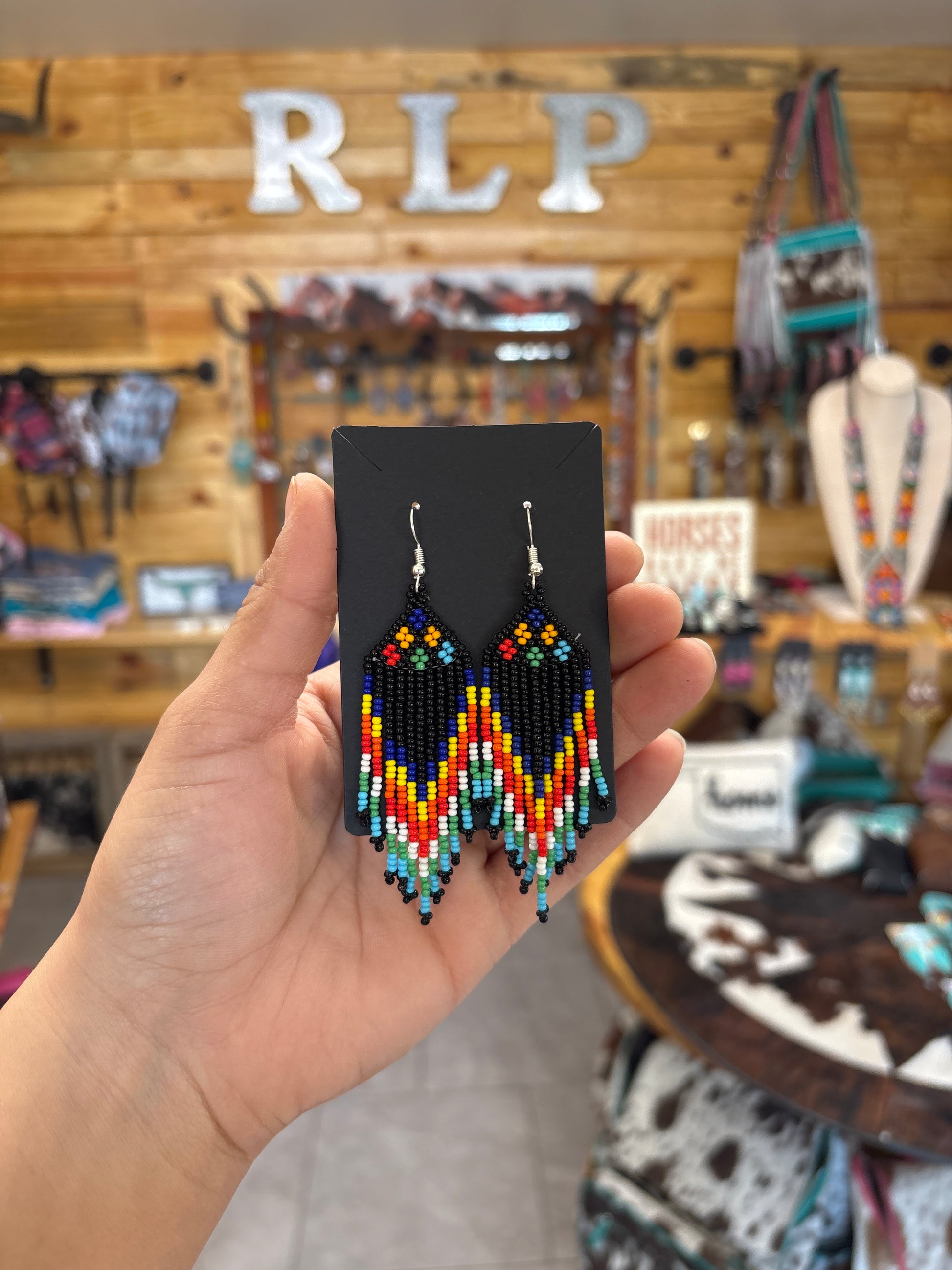 These handbeaded earrings are a perfect match for the lovebird necklace and bracelet. Measuring 3 1/2 inches in length, they add a touch of elegance to any ensemble.