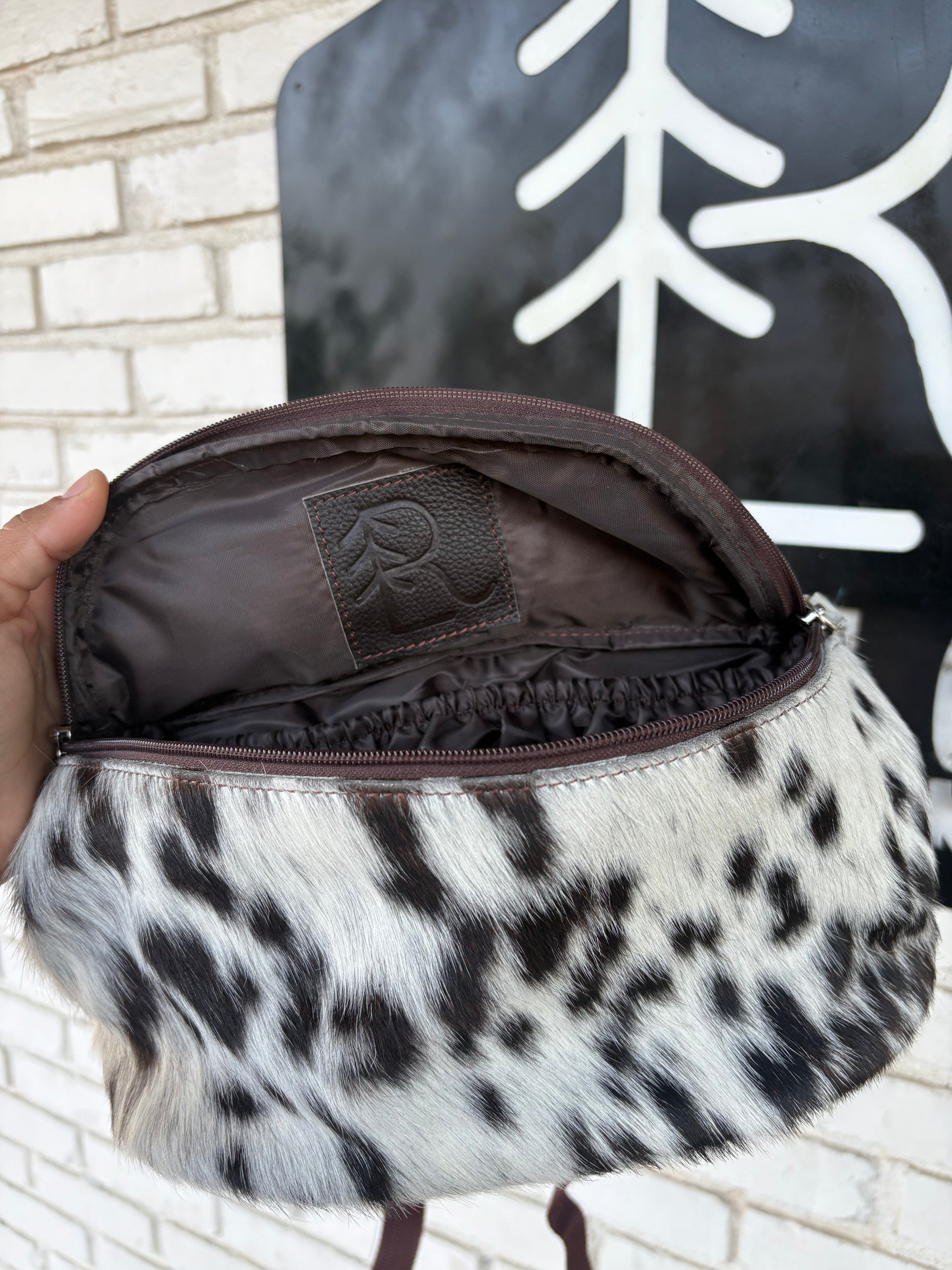 Expertly crafted with genuine cowhide and leather, the RLP Cowhide Saddle Sack measures 11" in length, 5" in width, and approximately 6" in depth. The adjustable straps ensure a perfect fit for your saddle, while the spacious interior features a pocket for your essentials and a zipper pocket on the back side. Securely bring your phone, drinks, keys, and more on your next horse ride with this must-have accessory.