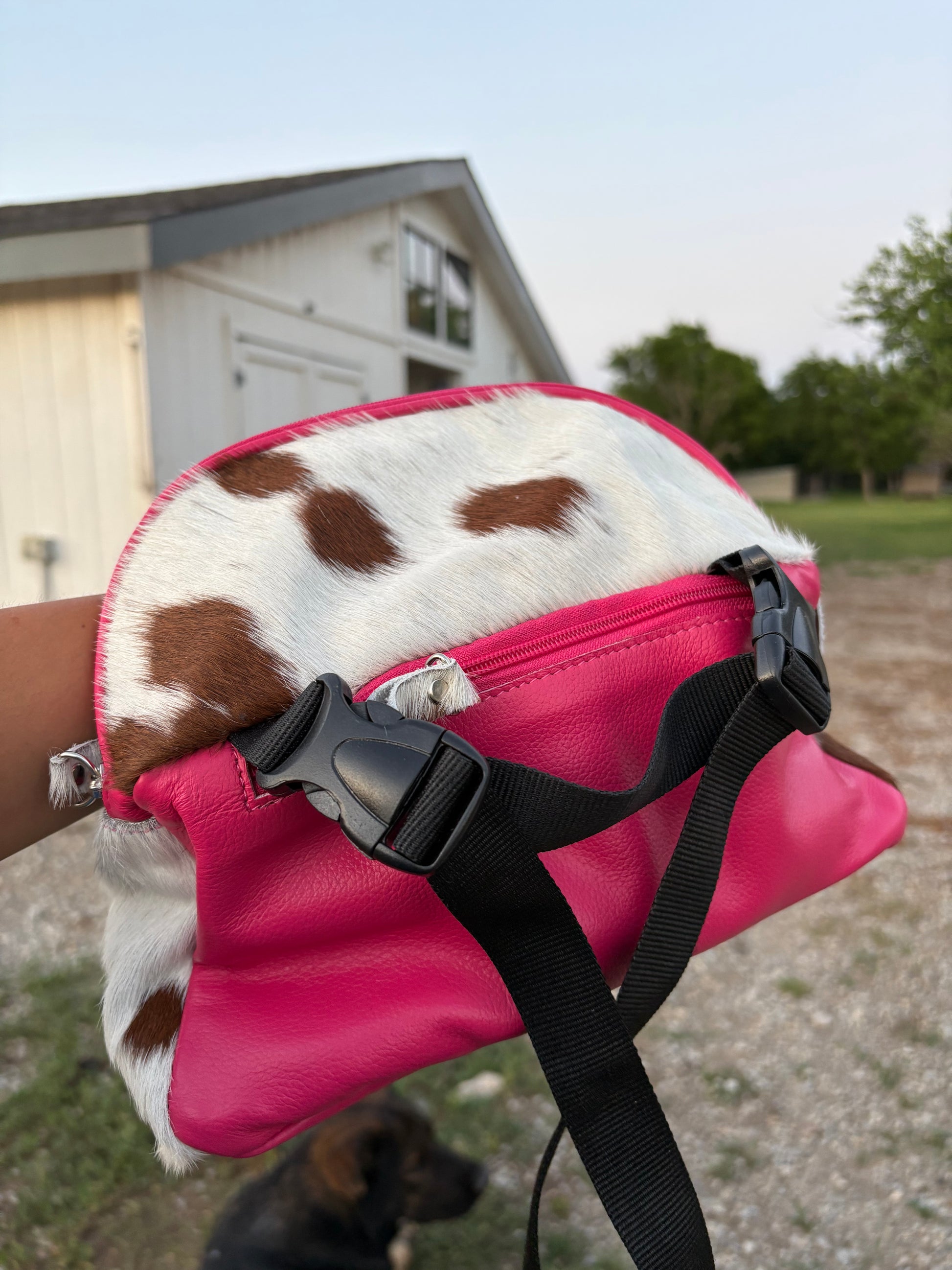 Expertly crafted with genuine cowhide and leather, the RLP Cowhide Saddle Sack measures 11" in length, 5" in width, and approximately 6" in depth. The adjustable straps ensure a perfect fit for your saddle, while the spacious interior features a pocket for your essentials and a zipper pocket on the back side. Securely bring your phone, drinks, keys, and more on your next horse ride with this must-have accessory.