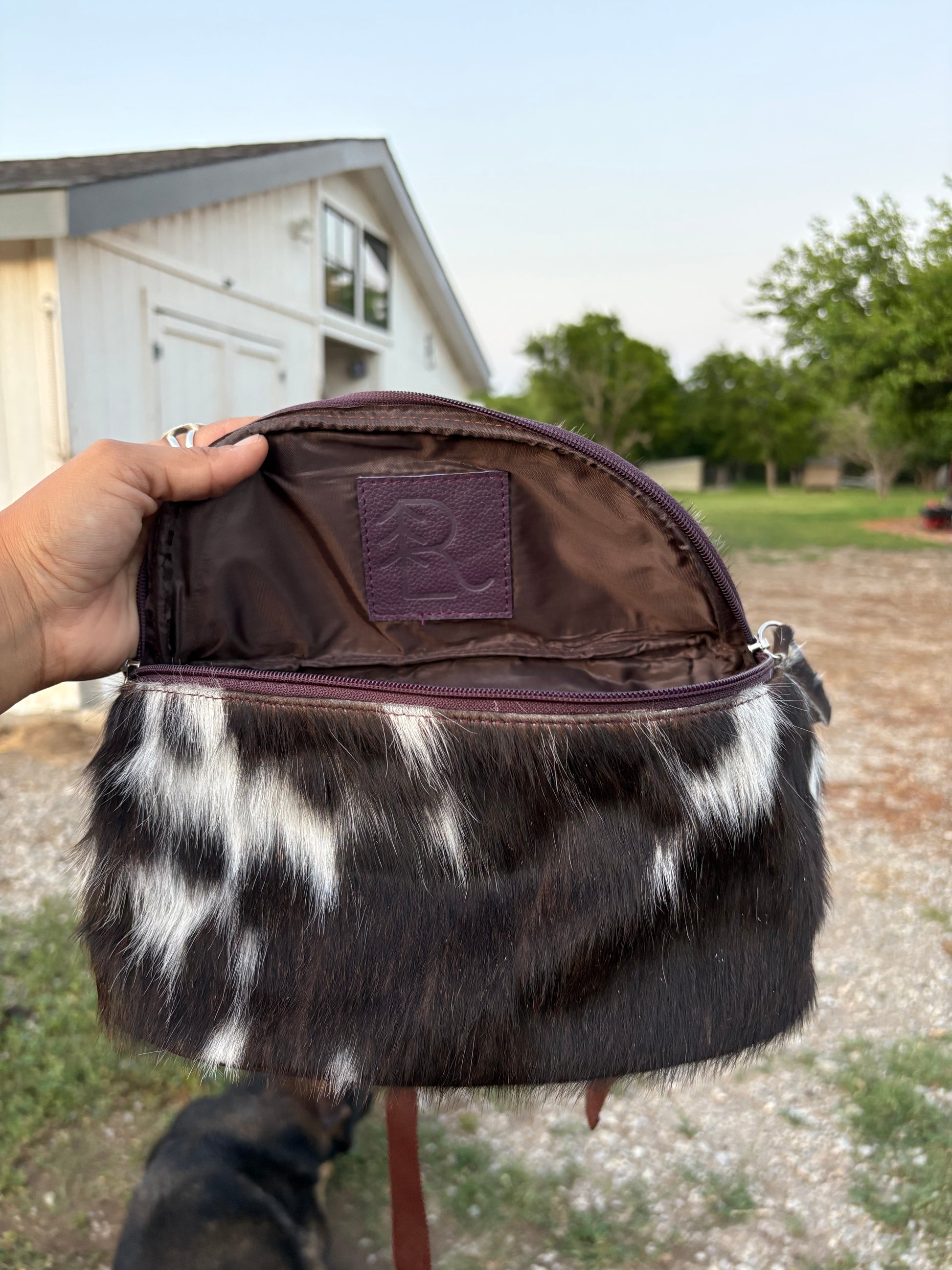 Expertly crafted with genuine cowhide and leather, the RLP Cowhide Saddle Sack measures 11" in length, 5" in width, and approximately 6" in depth. The adjustable straps ensure a perfect fit for your saddle, while the spacious interior features a pocket for your essentials and a zipper pocket on the back side. Securely bring your phone, drinks, keys, and more on your next horse ride with this must-have accessory.