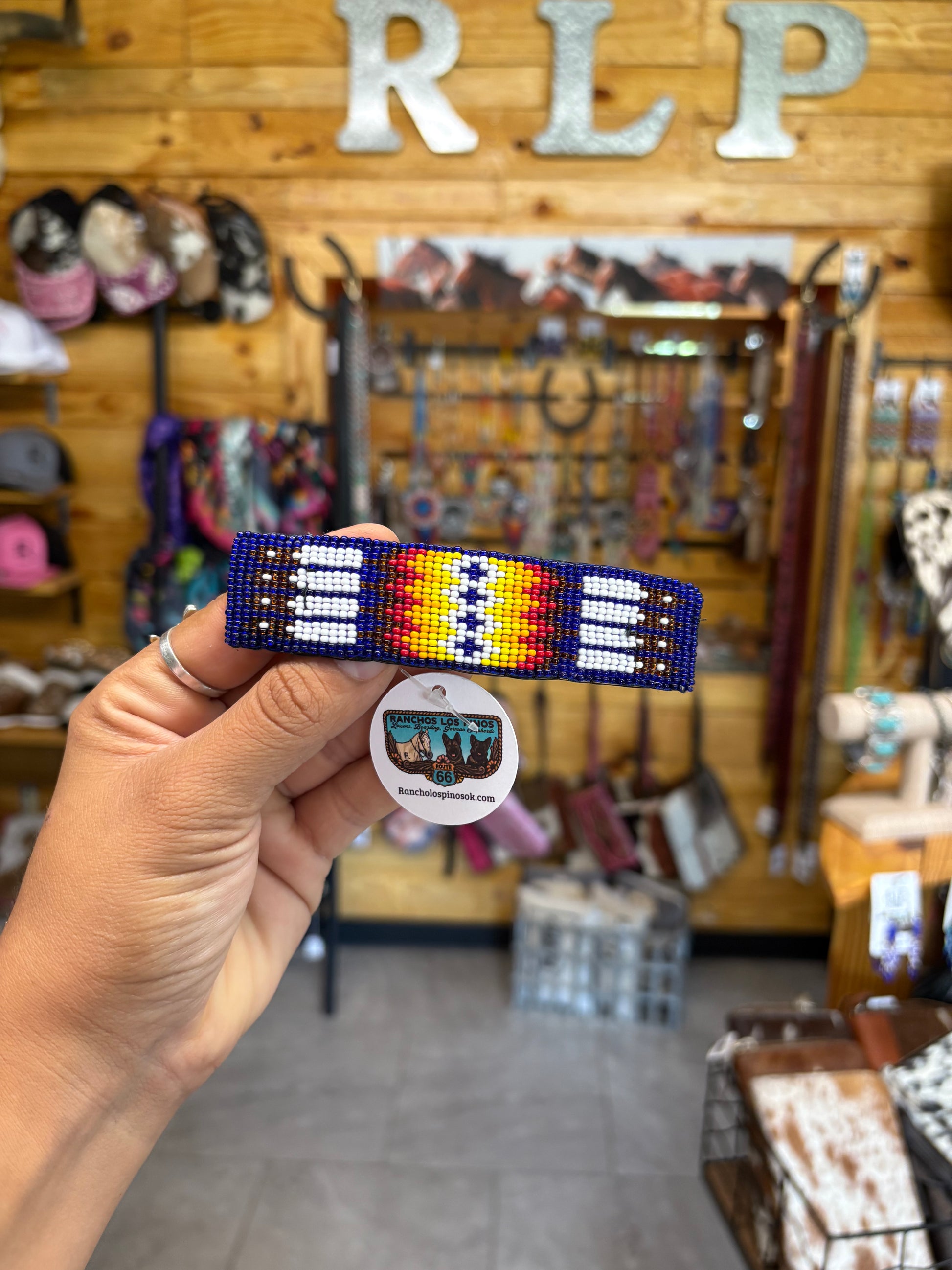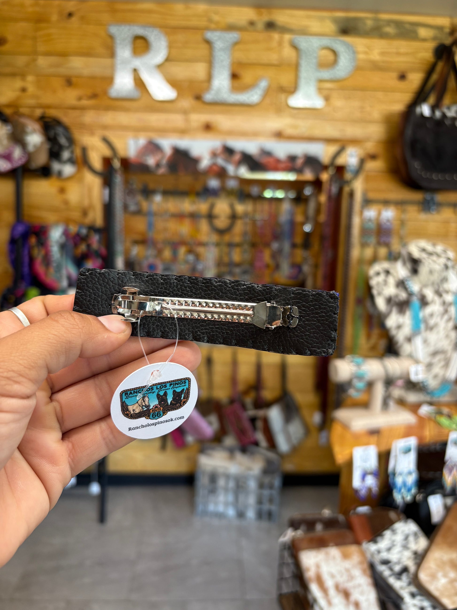 This 4.25" barrette features intricate beadwork meticulously sewn onto high-quality leather, making it a unique and durable accessory.
